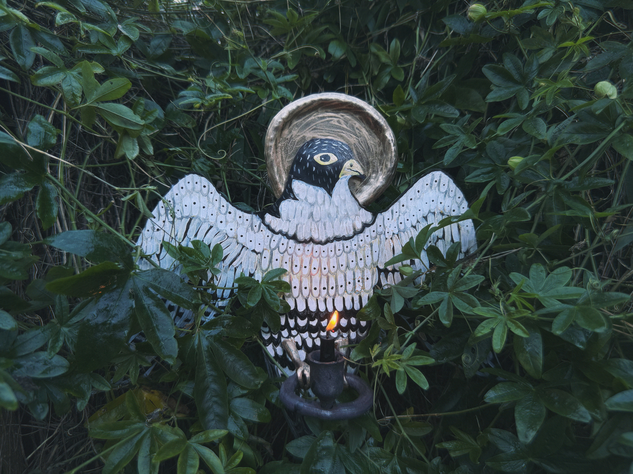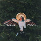 holding one palm out for the bird